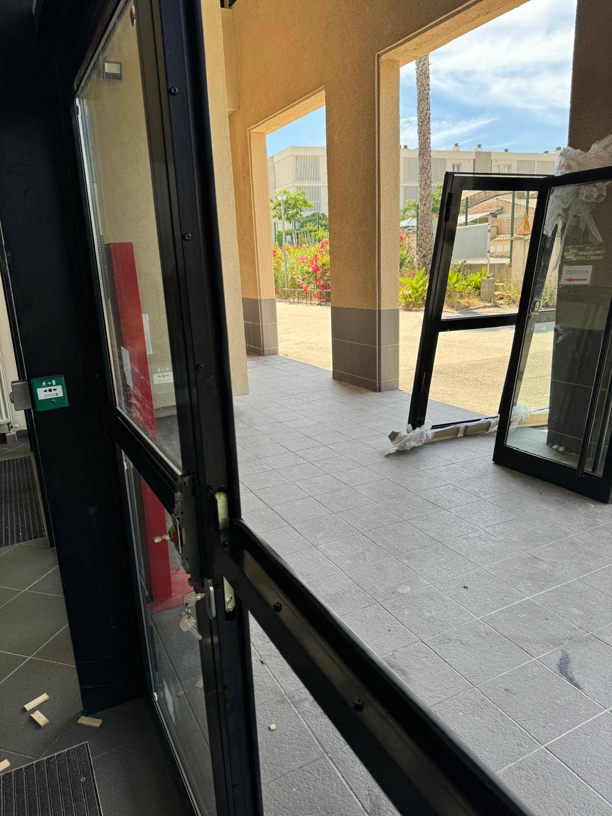 La mission a débuté par la dépose complète de l’ancienne huisserie, réalisée avec soin afin de préparer efficacement l’installation. Nous avons ensuite posé une double porte en aluminium sur mesure, parfaitement adaptée aux dimensions et aux exigences du site.